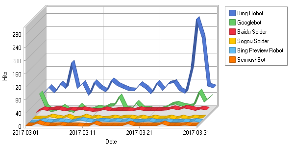 | 32 | Mozilla/5.0 (compatible; MojeekBot/0.6;  https://www.mojeek.com/bot.html) | 2 | 1 | 0.05% |